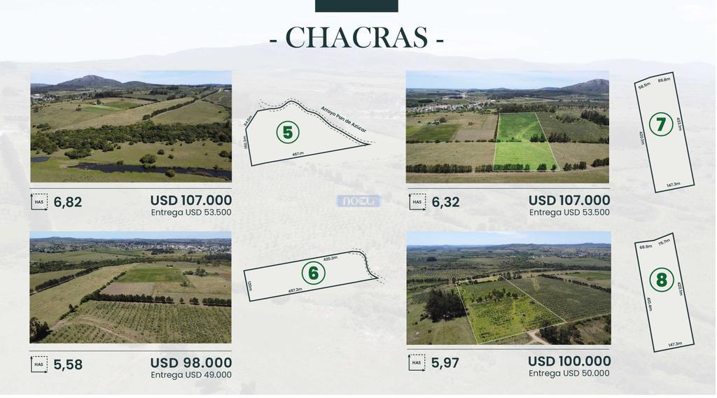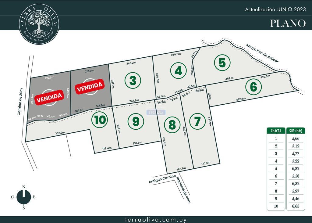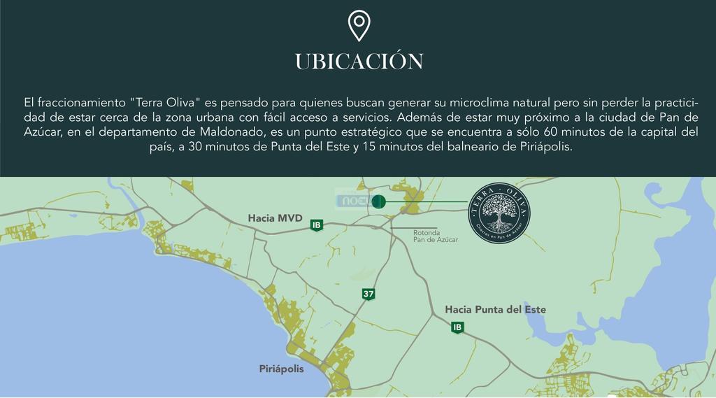INMOBILIARIA NOEL VENDE CHACRAS "TERRA OLIVA" A solo 2 minutos del centro de Pan de Azúcar y de la ruta interbalnearia, te espera tu mejor inversión. Diez chacras de aproximadamente 5 has que ofrecen la posibilidad de ser adquiridas con financiación